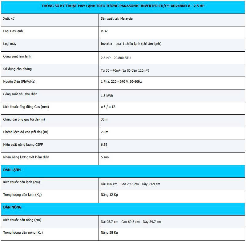 - Máy lạnh treo tường PANASONIC CU/CS-XU24BKH-8 Inverter 20.800Btu cao cấp