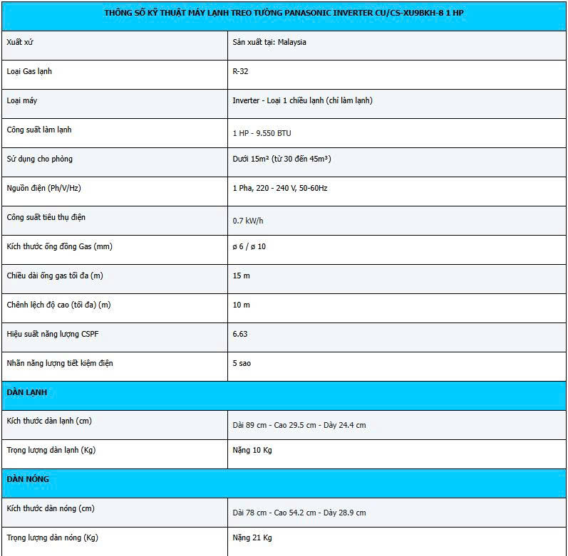 - Máy lạnh treo tường PANASONIC CU/CS-XU9BKH-8 Inverter 9.550Btu cao cấp